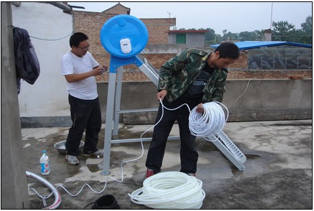 “安裝工作由1名公司技術(shù)人員和3名鎮(zhèn)上技術(shù)人員協(xié)同完成,安裝1套太陽能大概需要4小時就可以完成了,在安裝完成1-2天內(nèi)還會對農(nóng)戶作回訪,確保太陽能能正常使用,能真正的惠及老百姓。”技術(shù)人員陳慶林說。